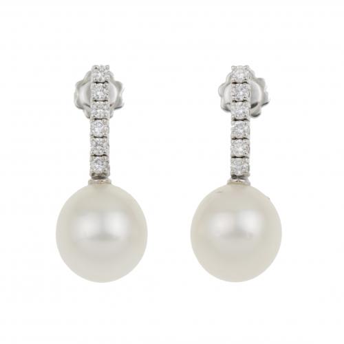 97. PENDIENTES LARGOS CON DIAMANTES Y PERLAS.