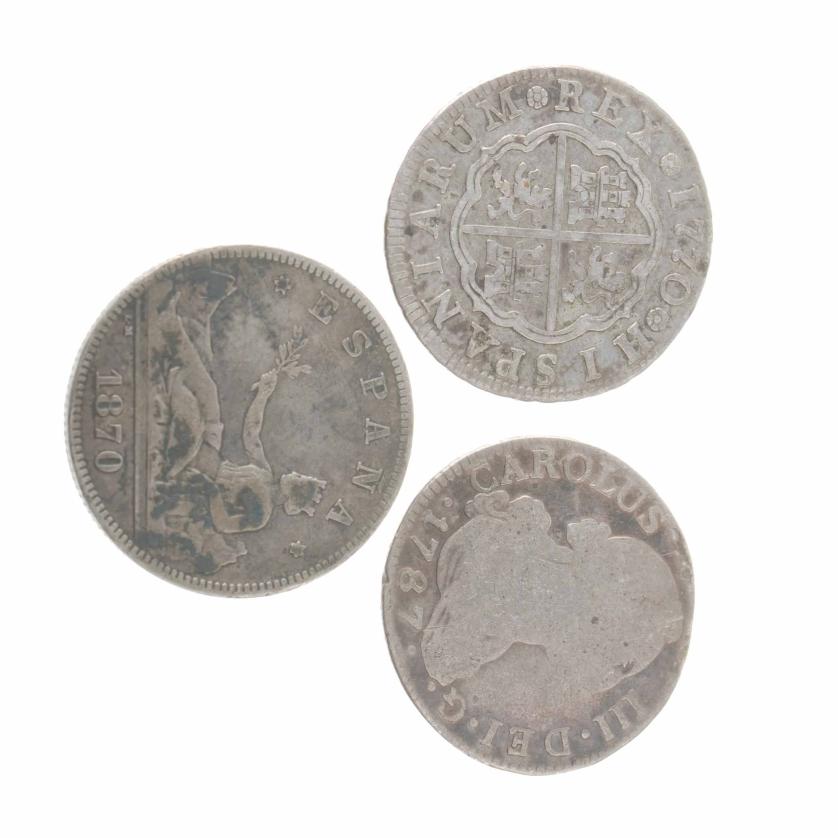 Carlos III de 1787, Carlos III de 1770 y dos pesentas de 1870.