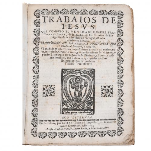 566. FRAY TOMÉ DE JESÚS (1529-1582). "TRABAIOS DE IESUS" (TOMO PRIMERO), 1695.