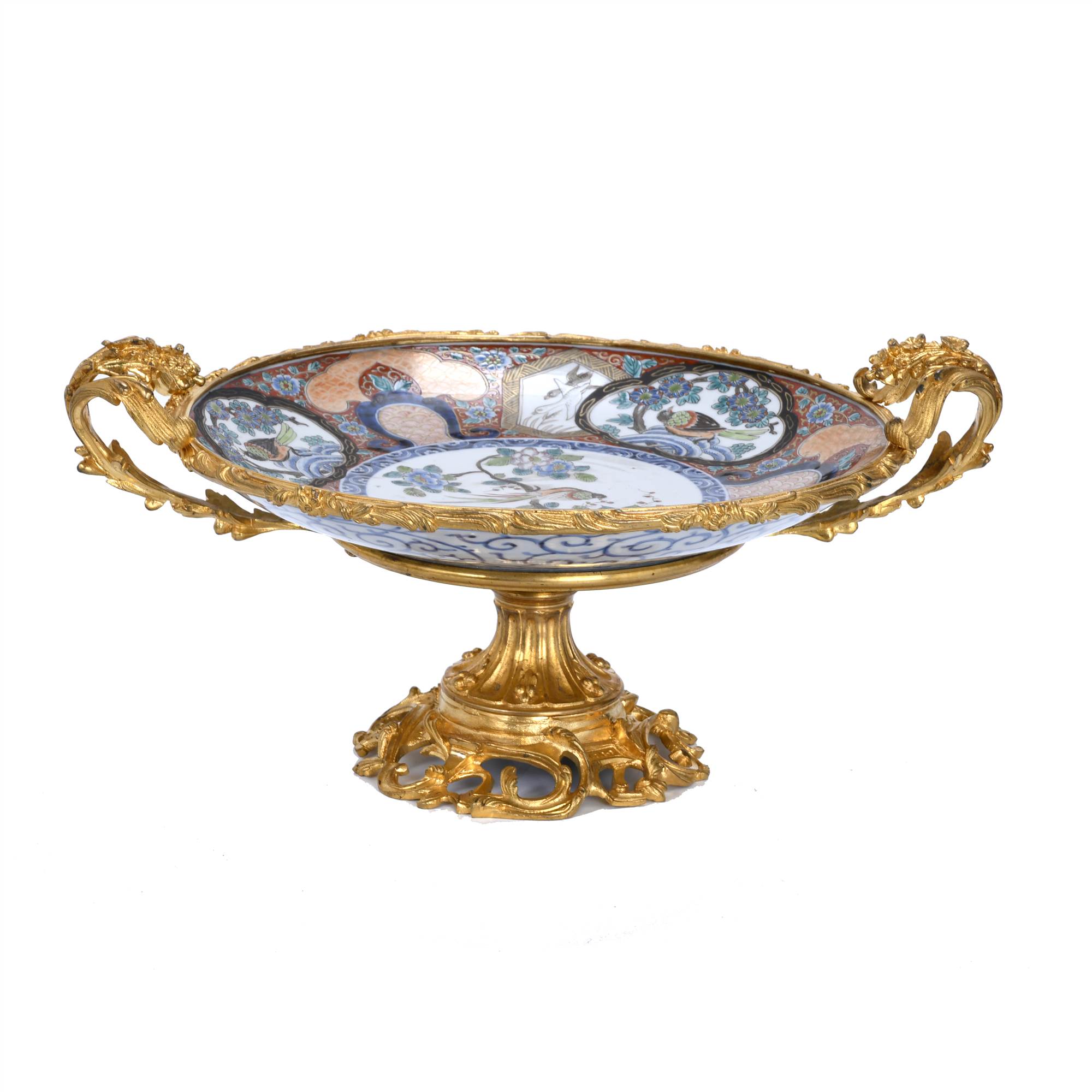 Plato japonés en porcelana Imari con montura, probablemente francesa, en bronce dorado.