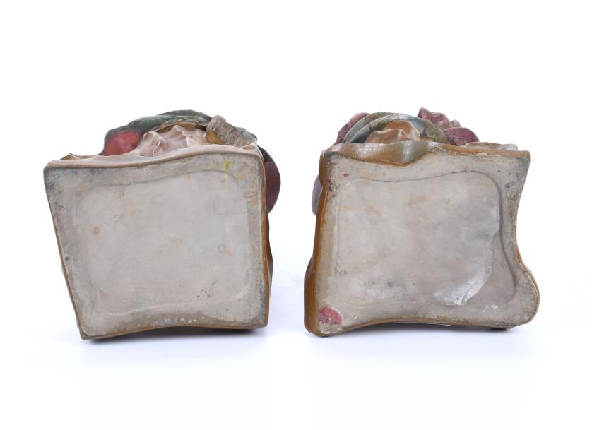496. PAREJA DE ESCULTURAS-CANDELEROS, SIGUIENDO MODELOS AUSTRÍACOS, SIGLO XX.