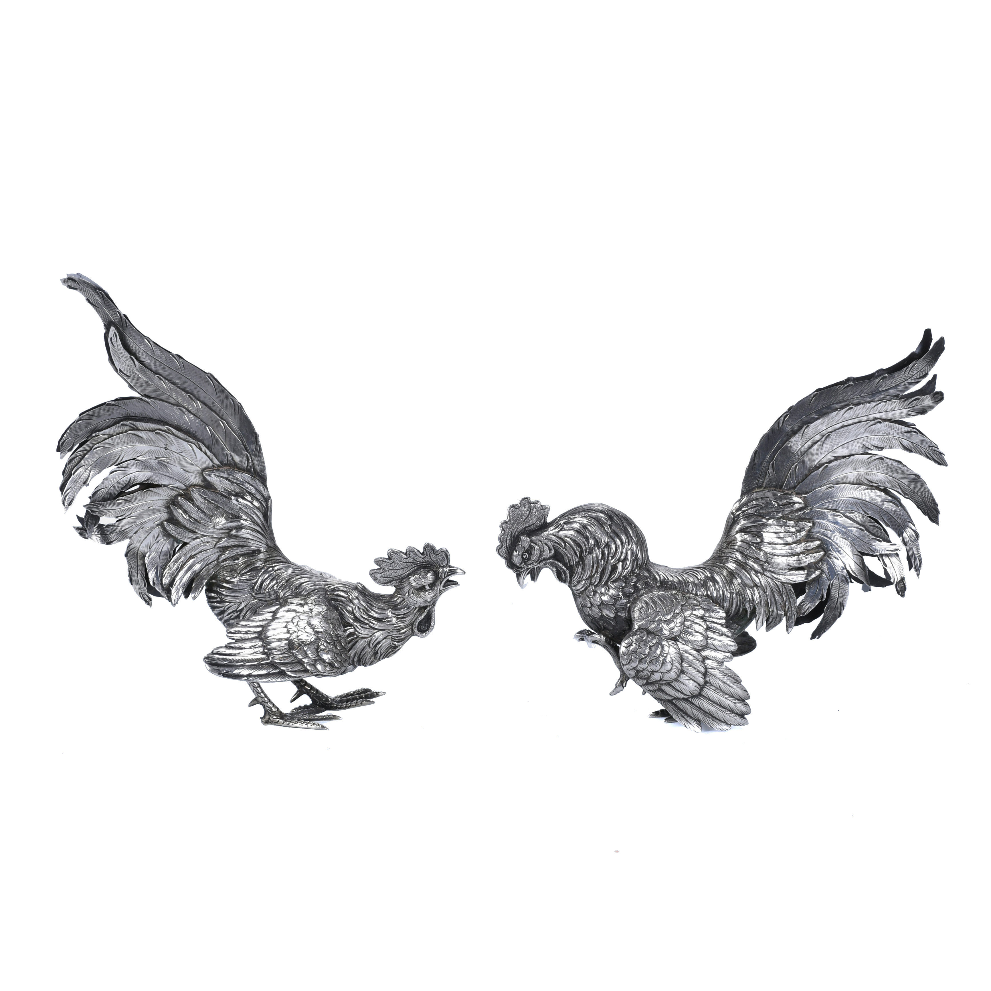 2. DOS GALLOS ESPAÑOLES EN PLATA, MED. SIGLO XX.