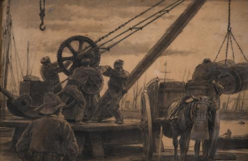 538. DIONÍS BAIXERAS (1862-1943). "ESCENA PORTUARIA", 1886.