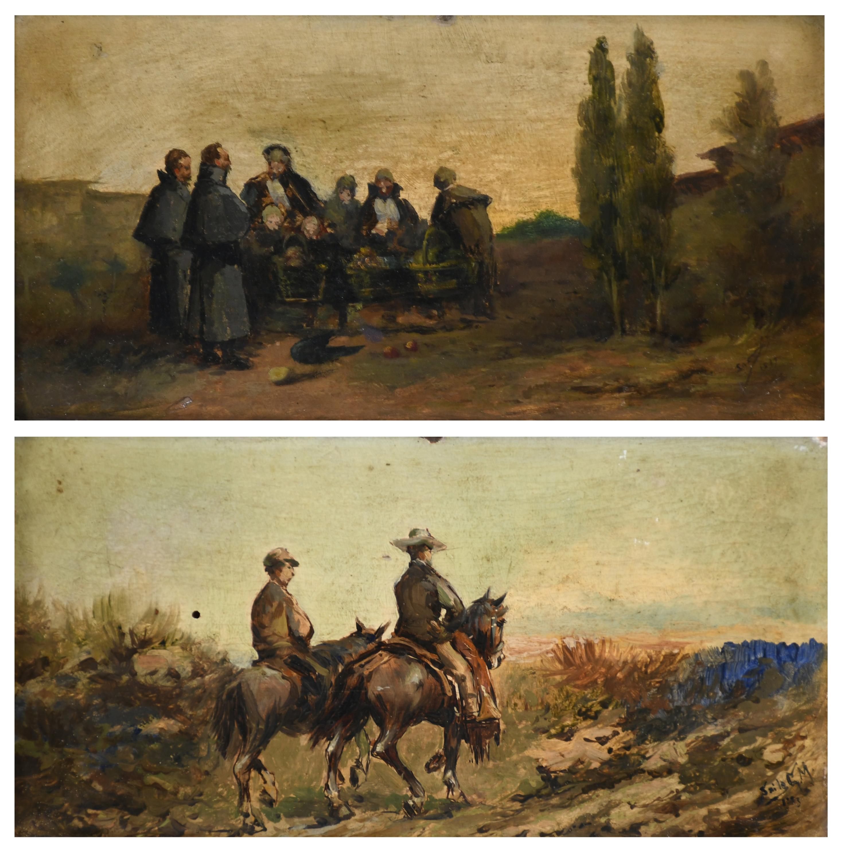 579. ESCUELA ESPAÑOLA, FINALES SIGLO XIX. "HOMBRES A CABALLO" y "FIGURAS".