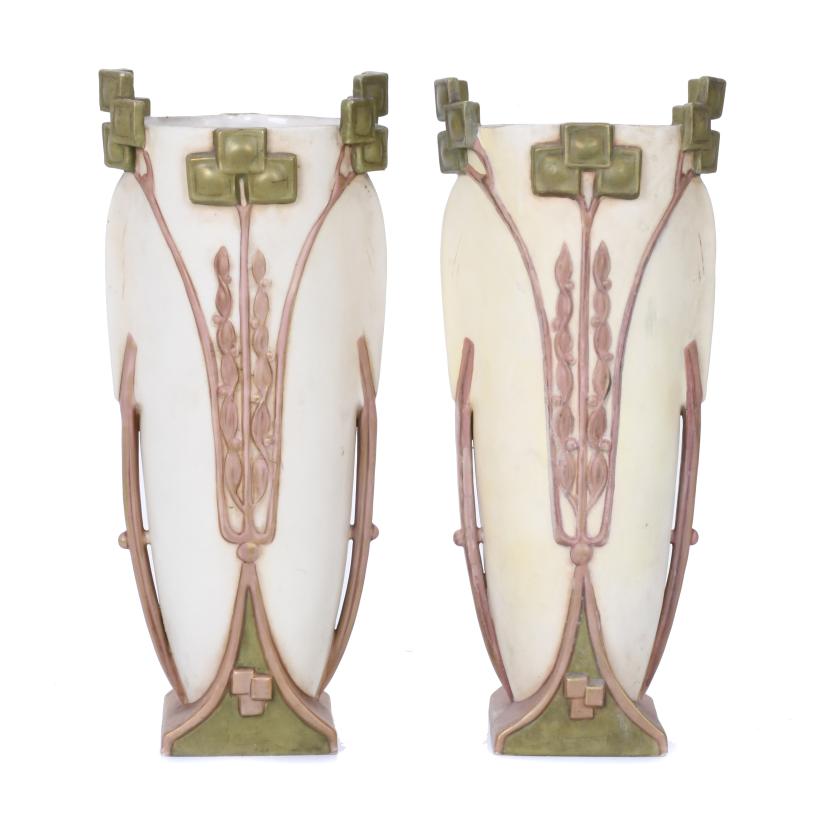 407. PAREJA DE JARRONES FRANCESES ART NOUVEAU, SIGLO XX.
