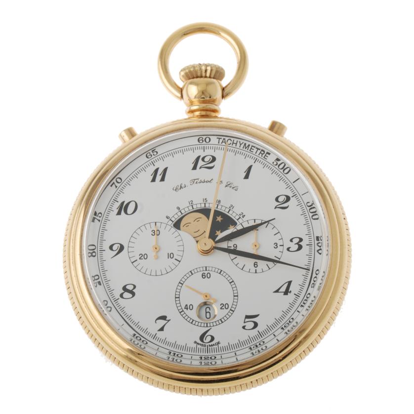 188. CHS. TISSOT & FILS. CRONOGRAPH MOONPHASE. RELOJ DE BOLSILLO.