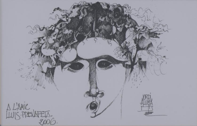 832. JORDI ALUMA MASVIDAL (1924-2021). Dos litografías y un dibujo a bolígrafo negro sobre papel, 2005-2008.
