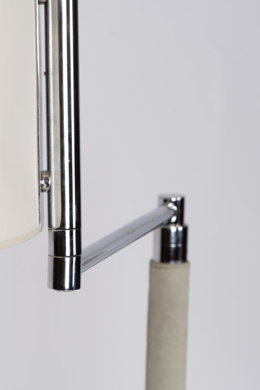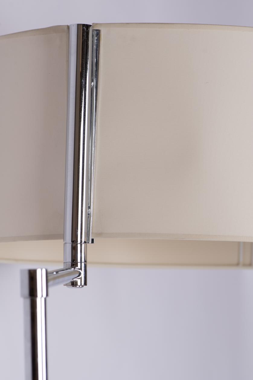 Pie en acero oxidable con piel de vaquetilla color pálido. Altura regulable.