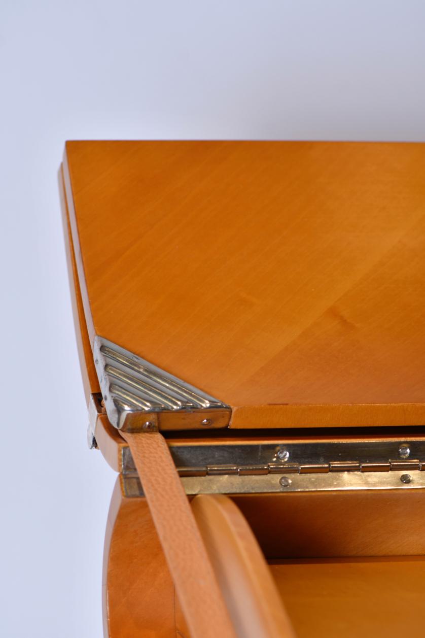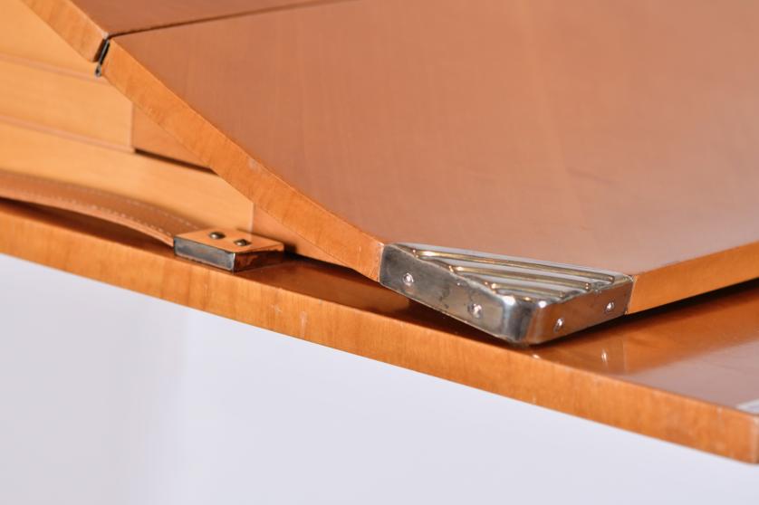 Secreter en nogal claro con interiores en sicómoro. Herrajes en baño de plata y correas de piel.