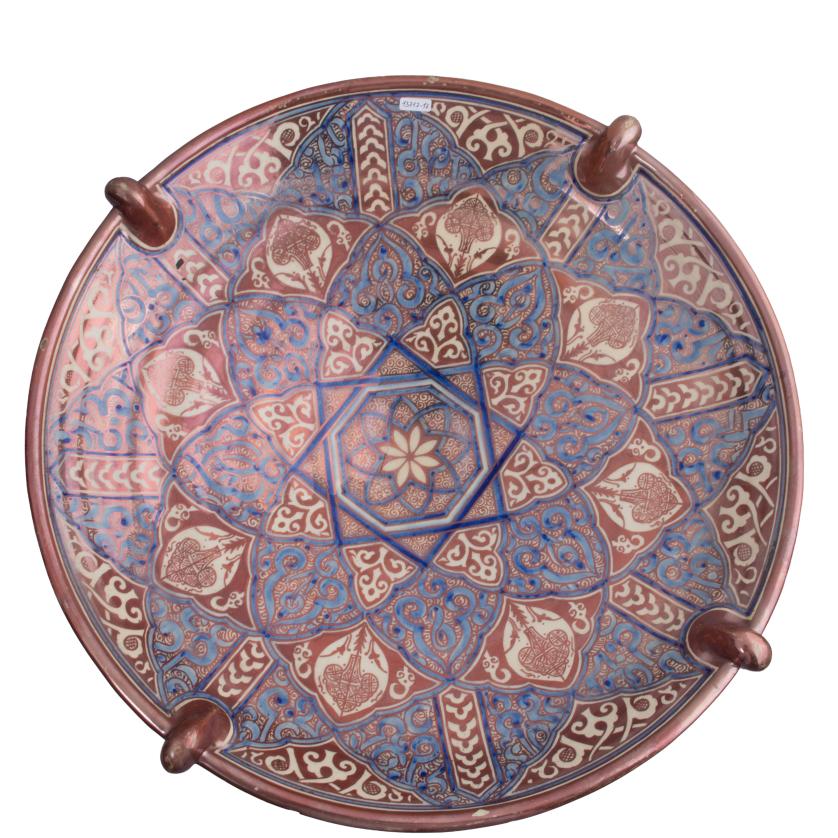 En cerámica con decoración de reflejos metálicos representando motivos vegetales.