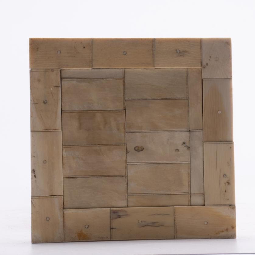 En marfil tallado, grabado y entintado.