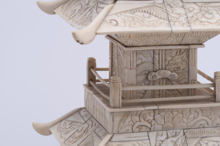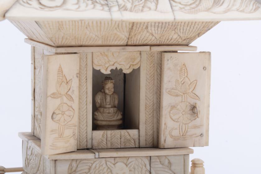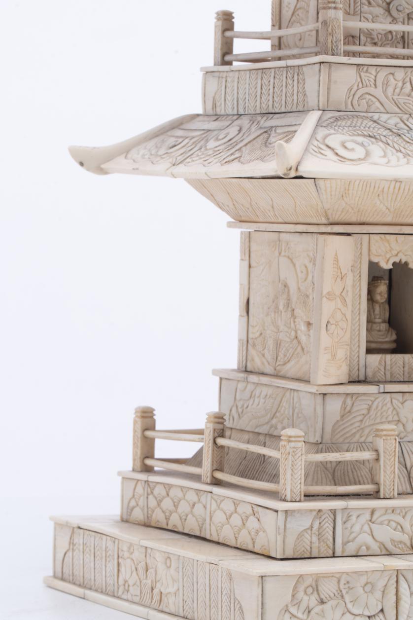 528. ESCUELA CHINA, SIGLO XIX. Pagoda en marfil.