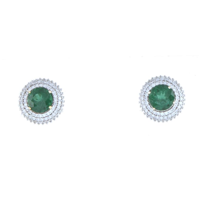 117. Pendientes rosetón de diamantes y esmeraldas