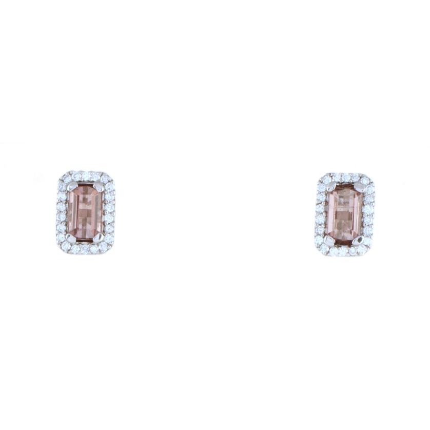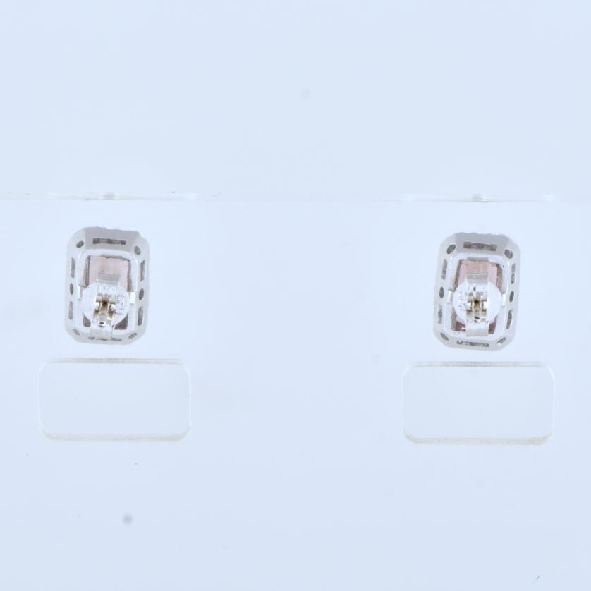 En oro blanco de 18 kt. Diamantes talla brillante. Turmalina rosa talla rectangular.