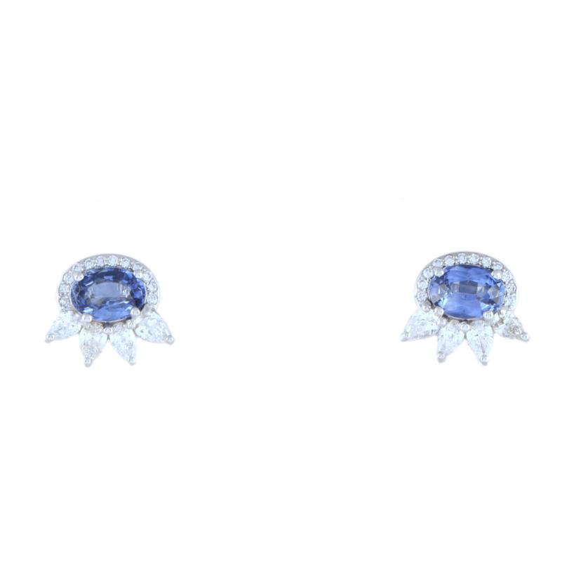 Realizado en oro blanco de 18 kt. Dos zafiros talla marquise con un peso de 3,11 cts. Diamantes en talla pera y talla brillante y peso aprox. 1cts.