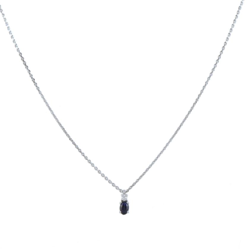 Con zafiro cabouchón y diamantes talla brillante con un peso total de 0,04 cts.