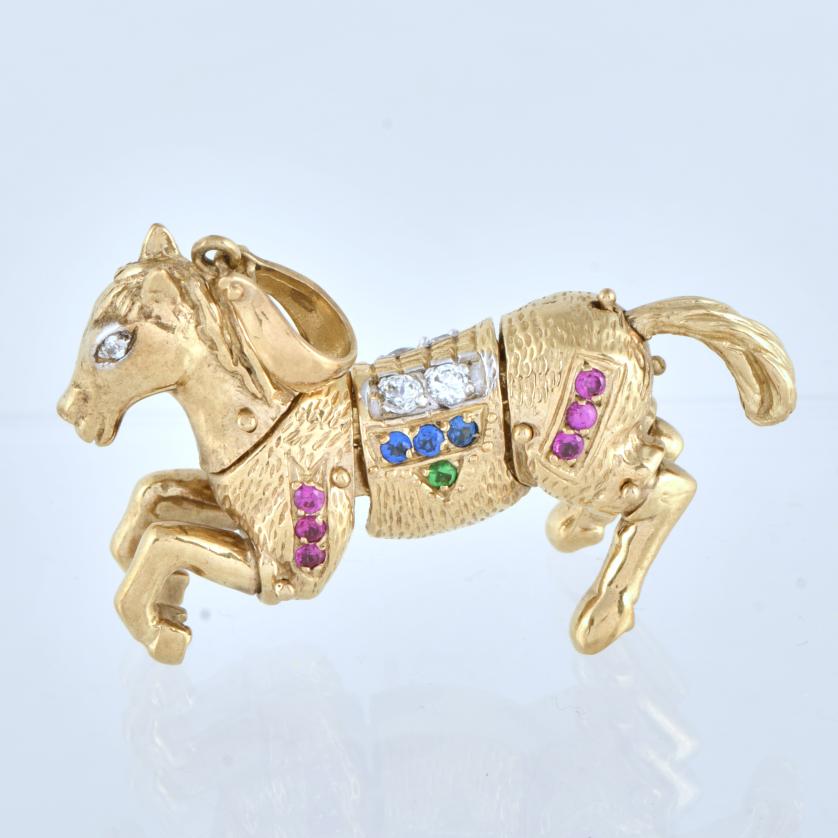 220. Colgante en forma de caballo articulado con pedrería sintética.