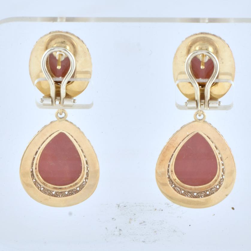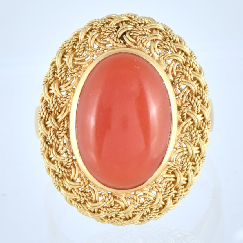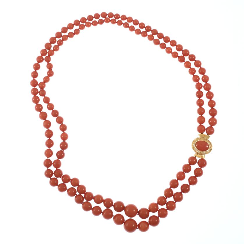 Monturas en oro amarillo de 18 kt. Coral en talla cabujón y en forma de cuentas.