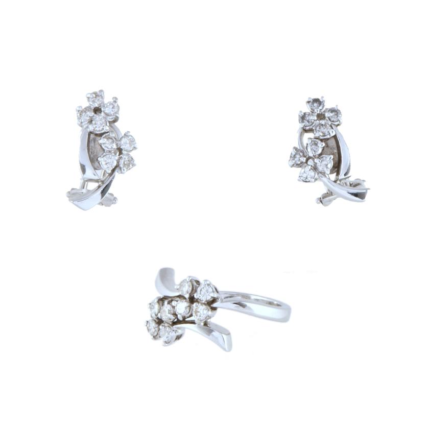237. Conjunto de pendientes y anillo en forma floral de los años 50 con diamantes.