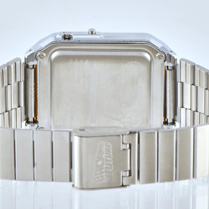 Caja de 35 mm rectangular en acero y correa en acero. Modelo inspirado en el DeLorean.