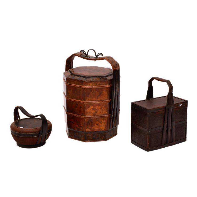 343. ESCUELA CHINA, DINASTÍA QING, SIGLO XIX. Lote de tres cestas de boda