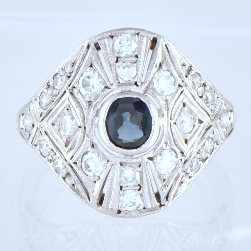 35. Anillo lanzadera estilo art déco con zafiro y diamantes.