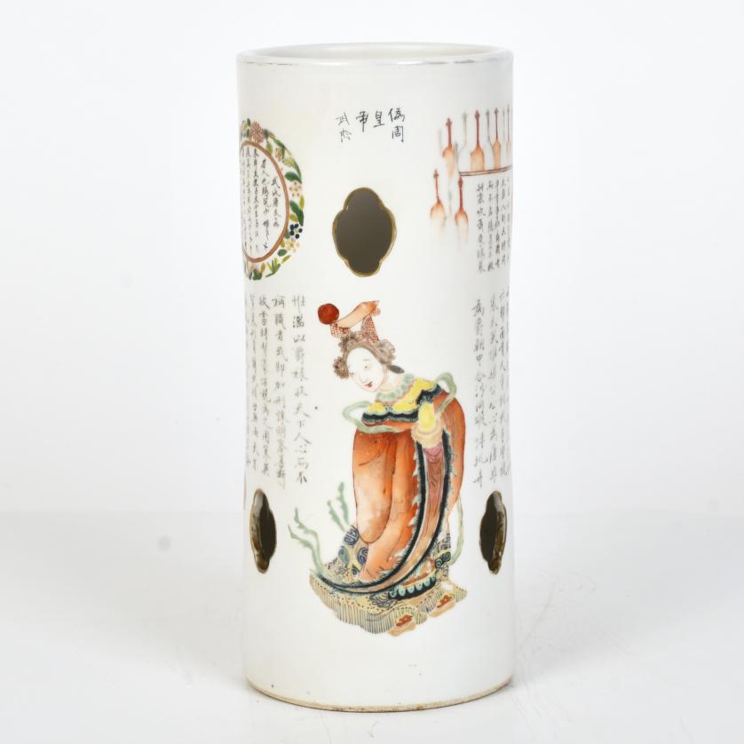363. ESCUELA CHINA, SIGLO XIX. Bote para sombreros