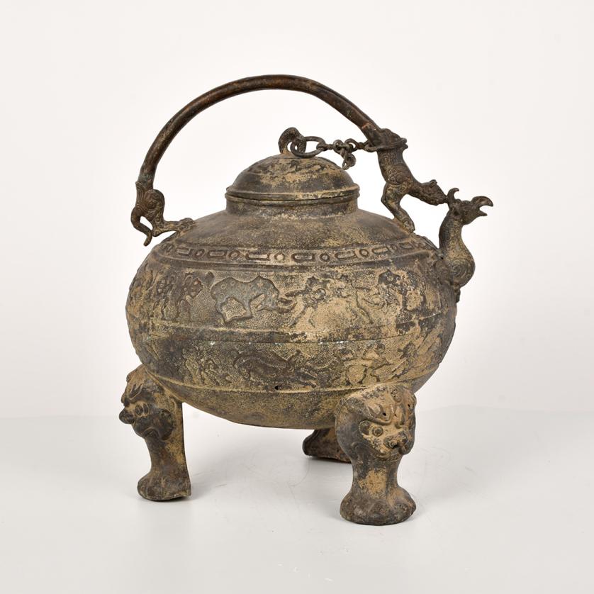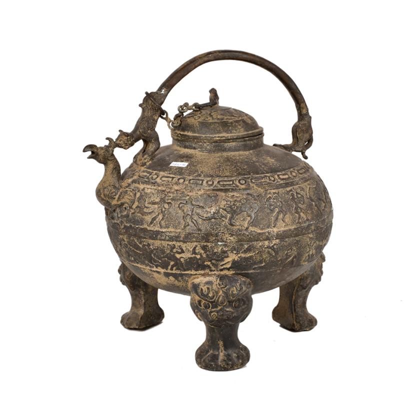 373. ESCUELA CHINA, SIGLO XIX. SIGUIENDO MODELOS DE LA DINASTÍA CHOU, recipiente en forma de tetera.