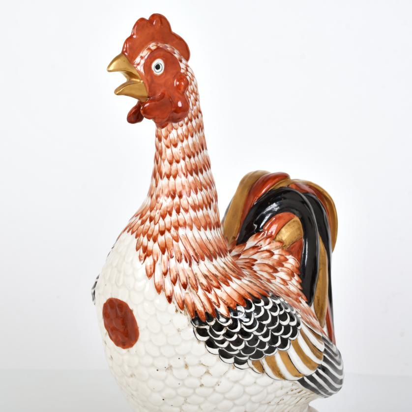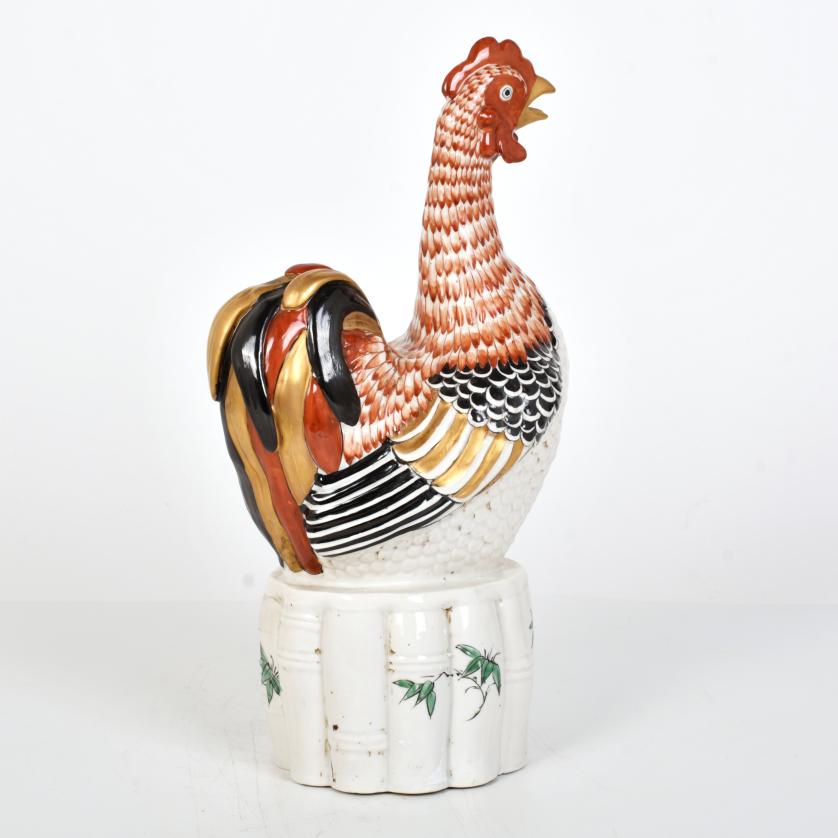 377. ESCUELA FRANCESA, SIGLO XIX. SIGUIENDO MODELOS DE LA FAMILIA ROSA, gallo sobre pedestal