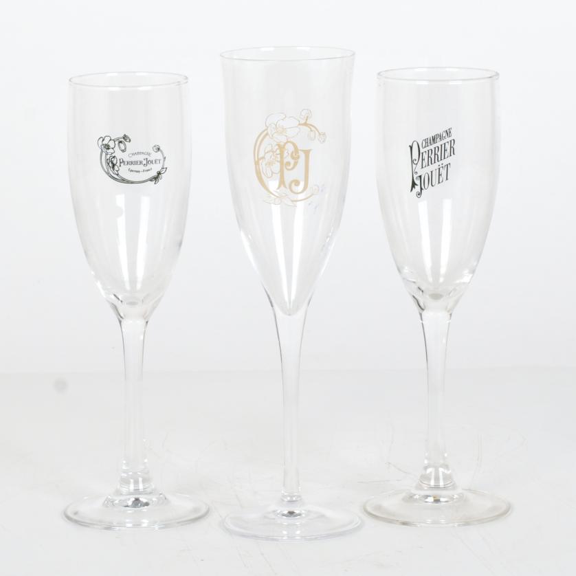 397. PERRIER JOUET, lote de 18 copas de champán y cubitera