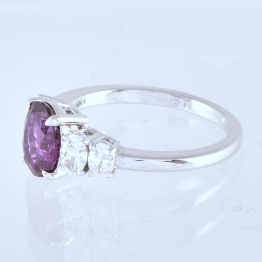 Realizado en oro blanco de 18 kt. Con un rubí central talla oval color Siam con un peso de 1,88cts aprox. Diamantes talla marquise de 0,78 cts.aprox.
