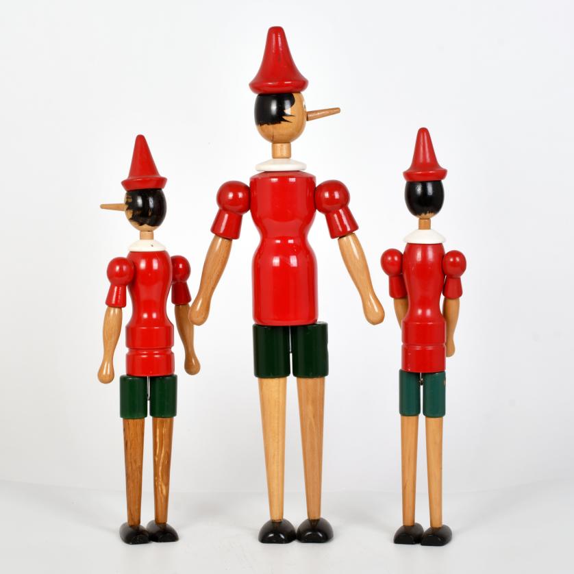 445. Lote de 3 Maniquí "pinoccio", circa 1970