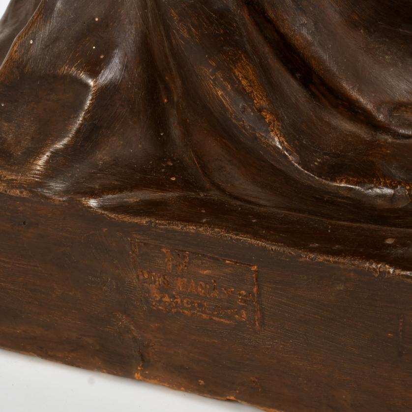 Inscripción en el pergamino "Concebida sin manchas". Sello en la parte trasera "Compañía Macia y Compañía Barcelona".