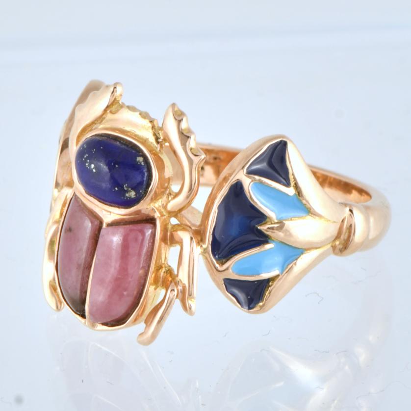 52. Anillo siguiendo modelos egipcios en forma de escarabajo con esmalte.