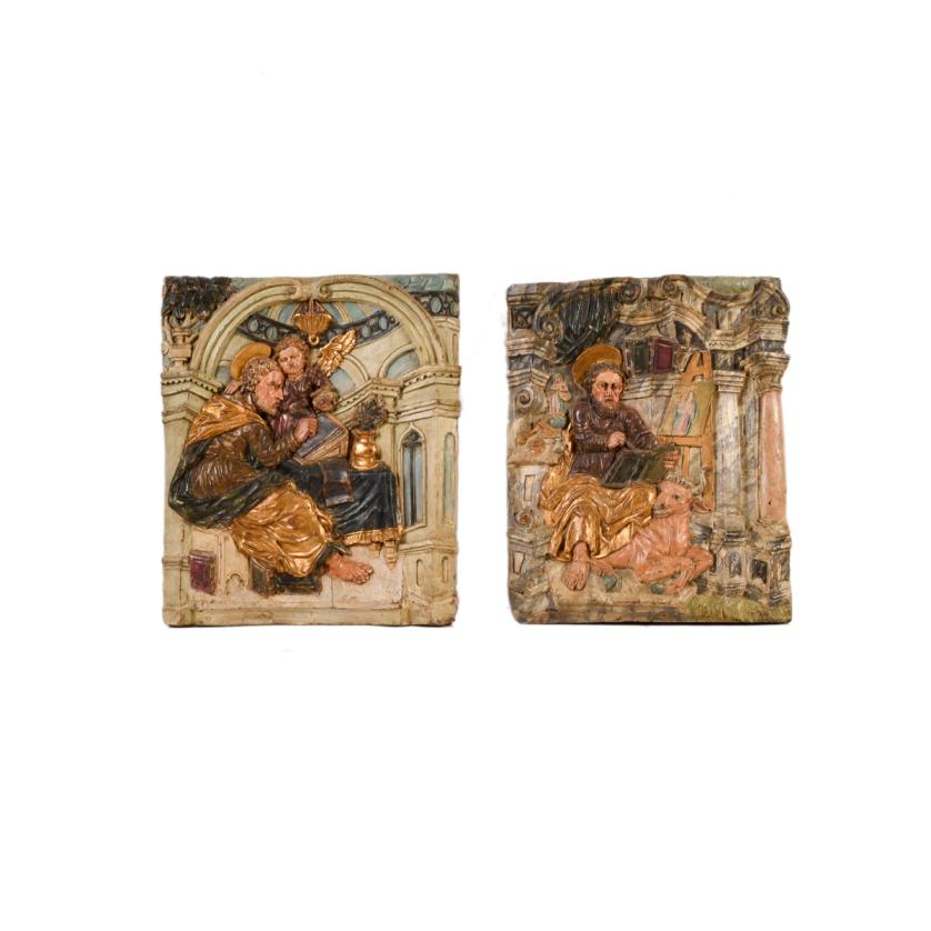 540. ESCUELA ESPAÑOLA, SIGLO XIX. Relieves de San Mateo y San Lucas