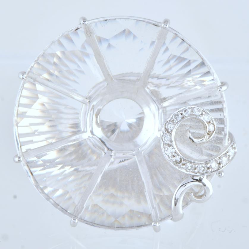 En oro blanco de 18 kt. Cuarzo blanco multifacetado.
