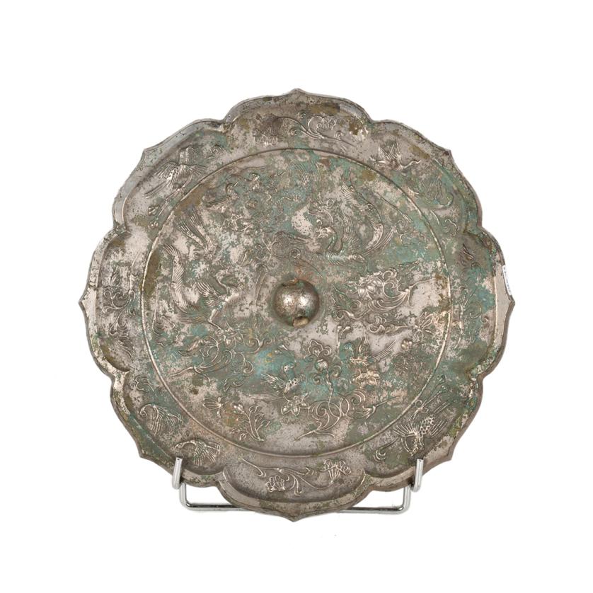 En broce. Decorado con aves fénix, pájaros y motivos florales.