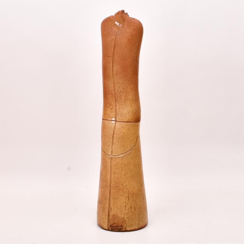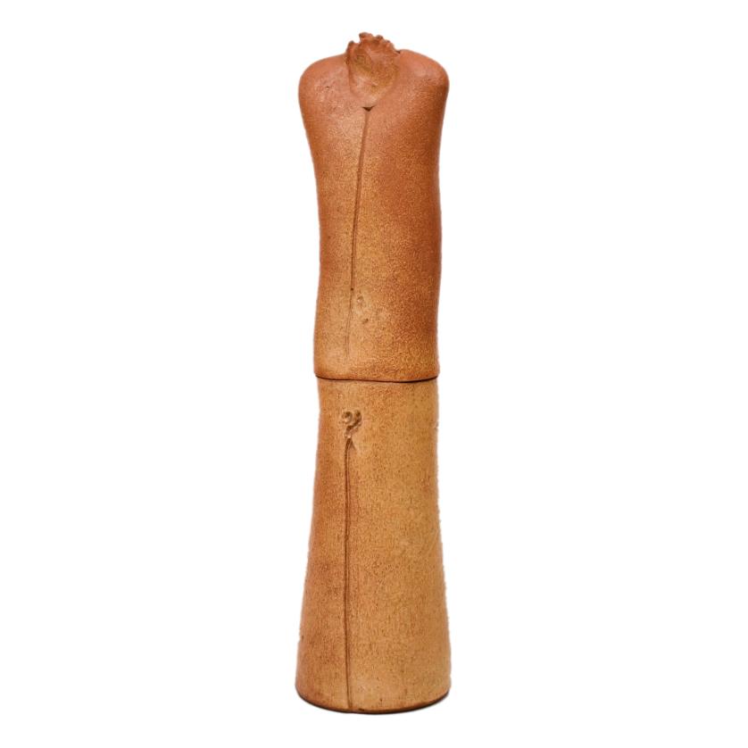 Escultura en terracota moldeada a mano, formada por dos piezas que se encajan siguiendo un suave contorno femenino.