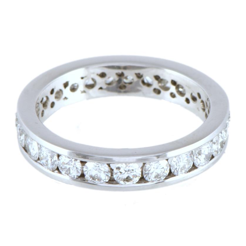 En oro blanco de 18 kt. con carril de diamantes talla brillante. H-Vs