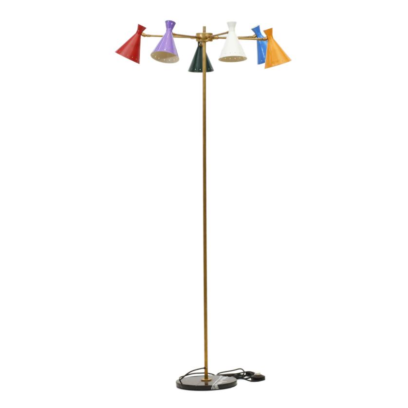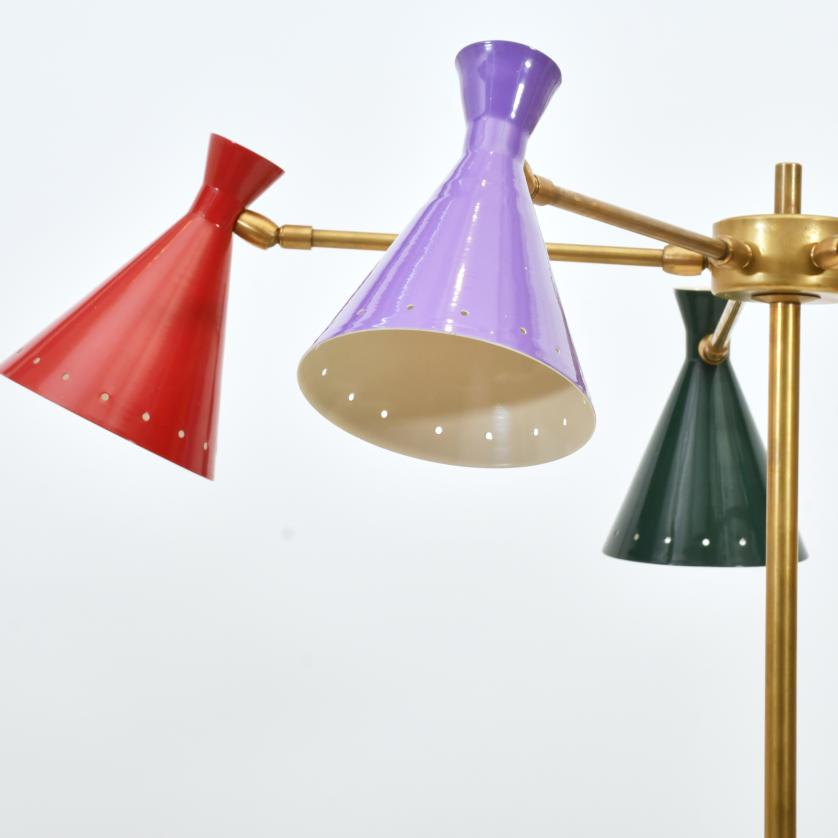 En latón y metal lacado. Con seis luces.