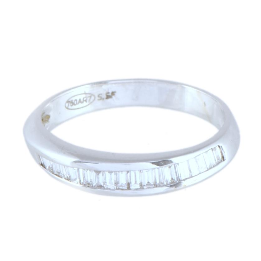 En oro blanco de 18 kt. Diamantes talla baguette.