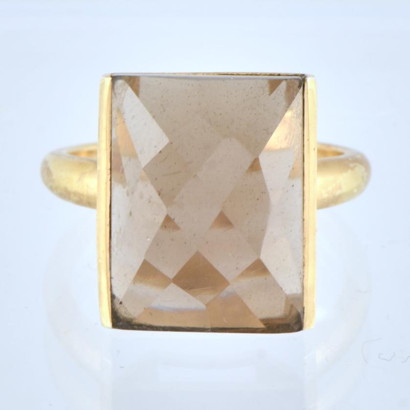 En plata 925 chapada en oro. Cuarzo fumé rectangular facetado.