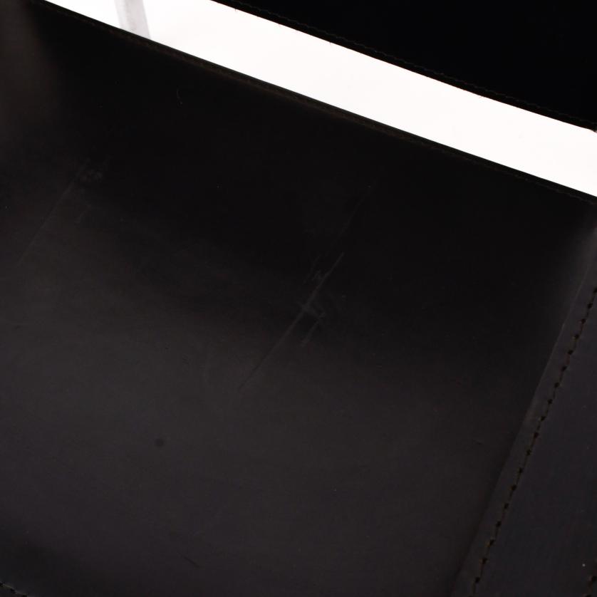 Estructura tubular en acero cromado y asiento en cuero negro.