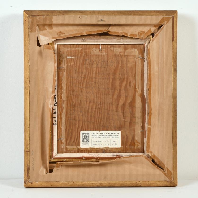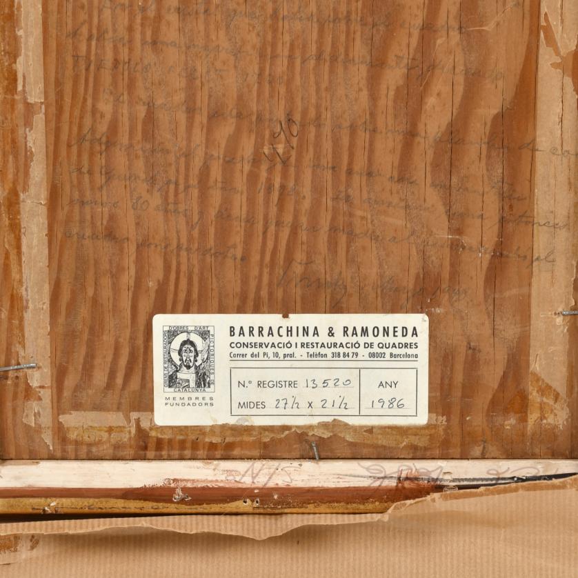 La tabla, al dorso, presenta un texto posterior, manuscrito a lápiz, prácticamente ilegible.