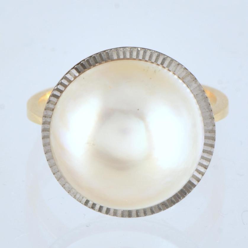En oro amarillo de 18 kt. Perla mabé de 14.5mm diám.
