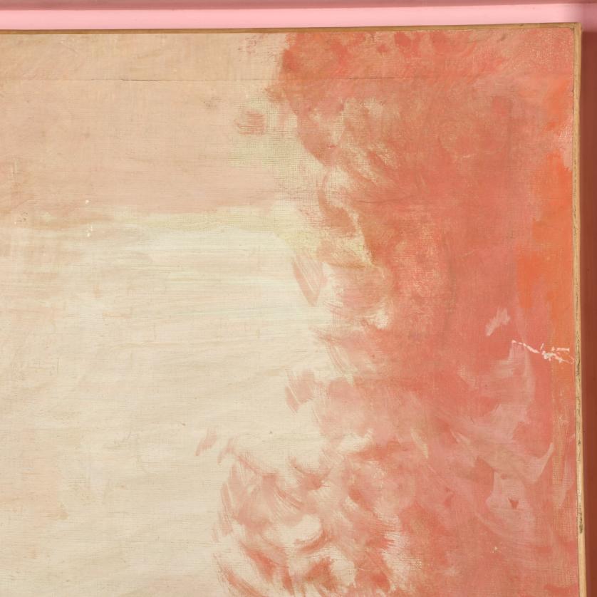 Presenta pequeñas faltas en la capa pictórica y restauración de la tela visible al dorso.