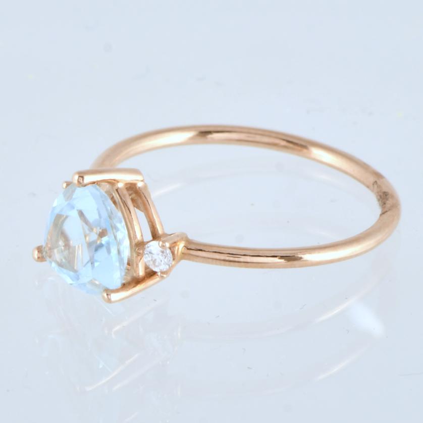 En oro rosa de 18 kt. Topacio talla trillón. Diamantes talla brillante.