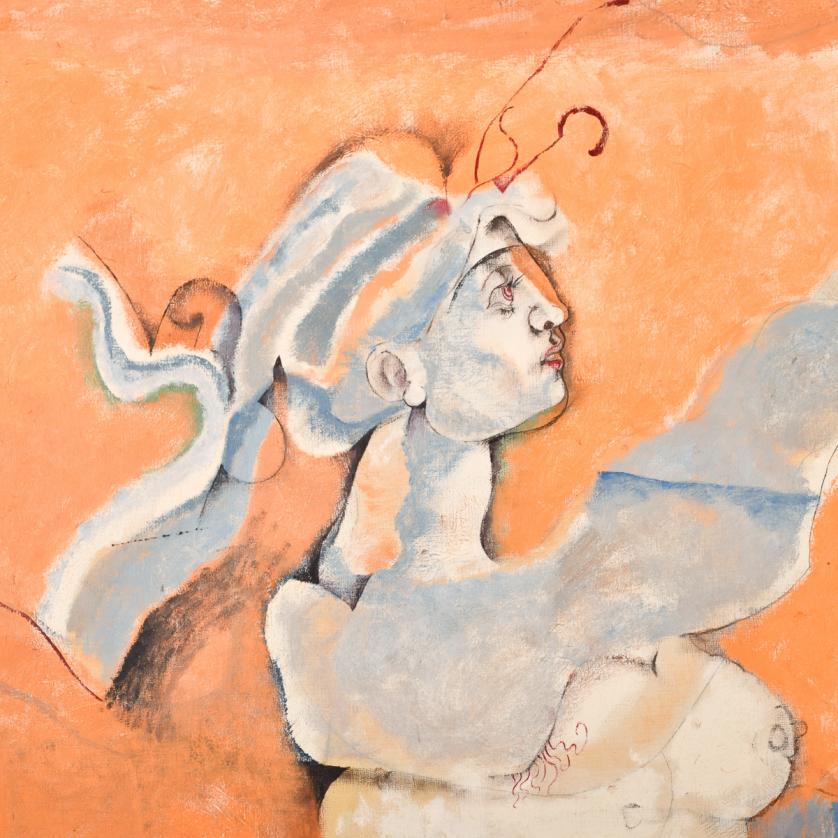 806. EDUARD ARRANZ BRAVO (1941-2023). "Mujer, cabeza de hombre, dos peras y fondo naranja", 1967.
