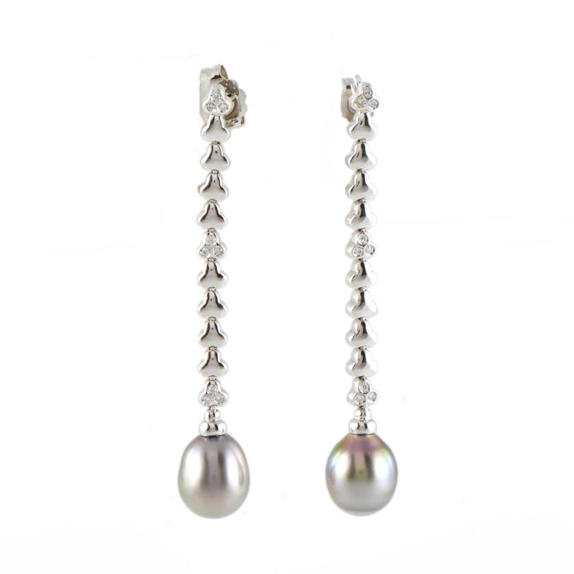 116. Pendientes largos con perla Thaití.
