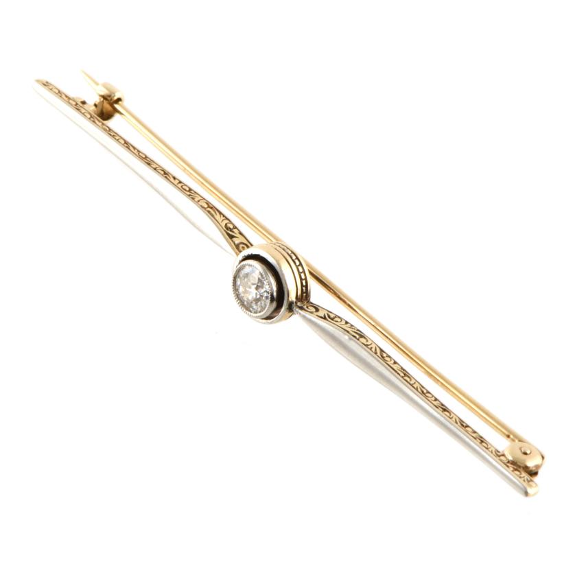 En oro amarillo y vistas en oro blanco de 18 kt. diamante talla brillante de 0,25 ct.